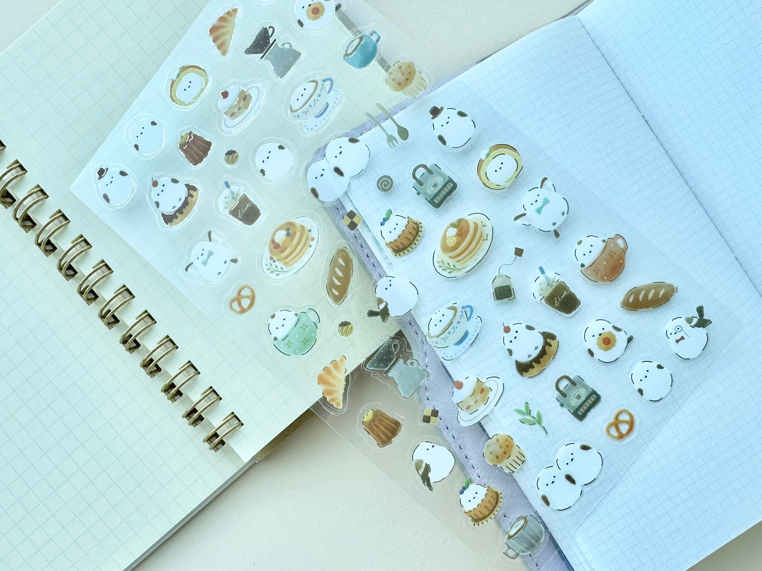 Klistermerker med stjertmeiser som slapper av på en kafé.