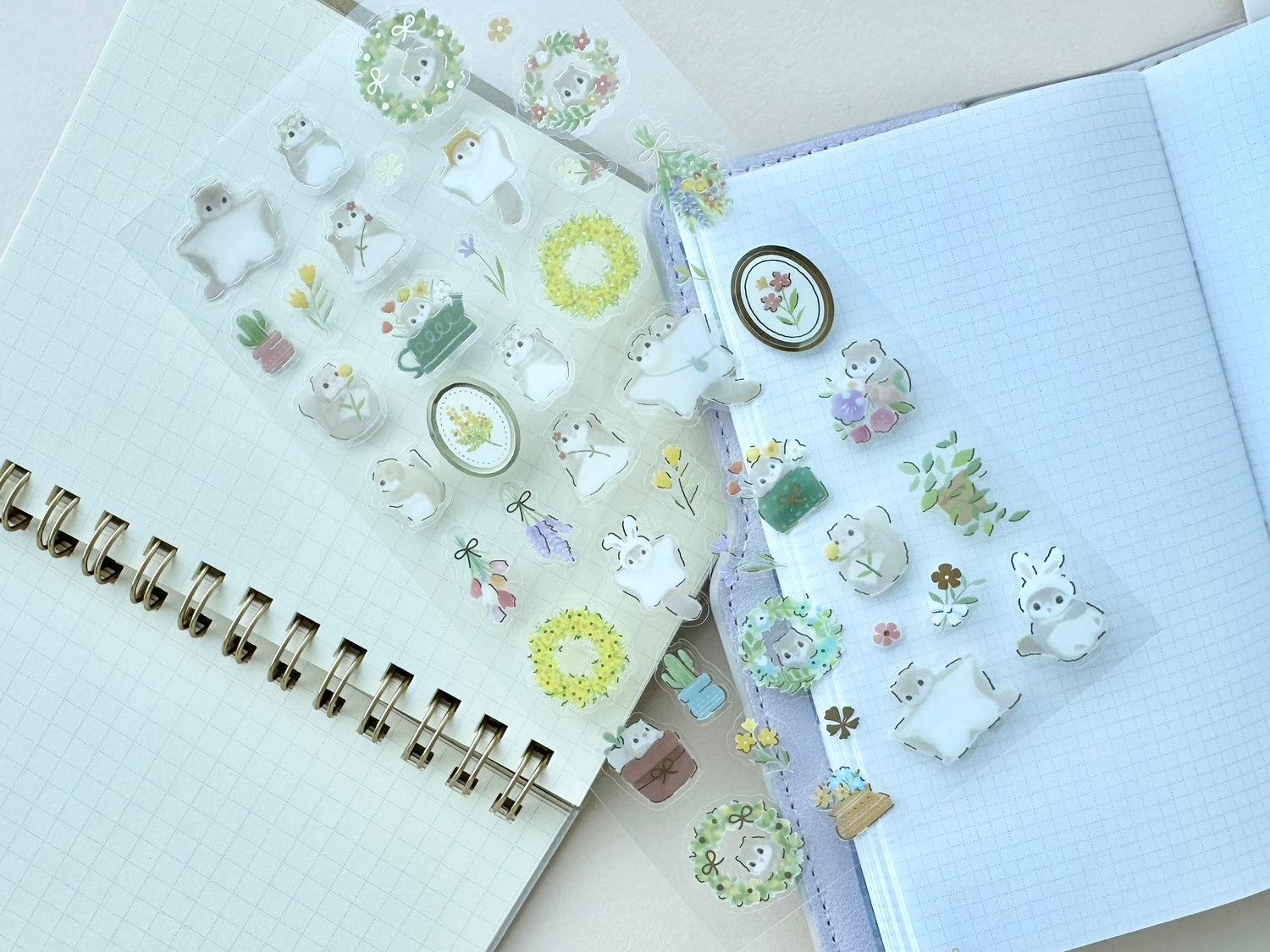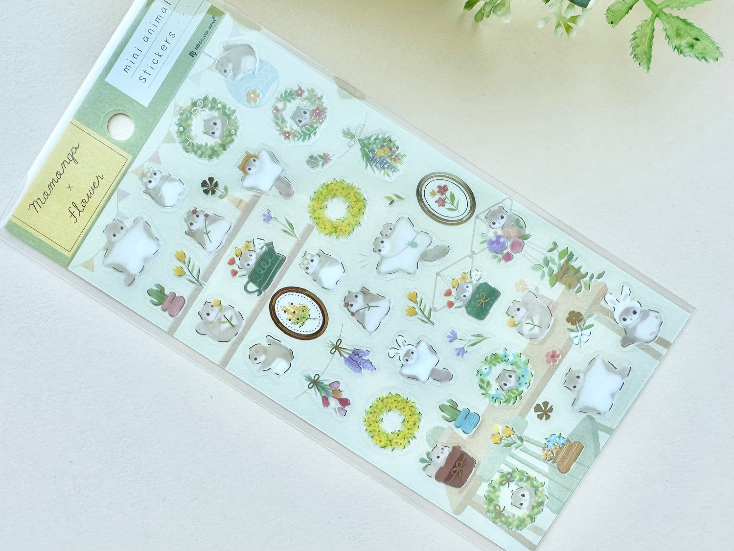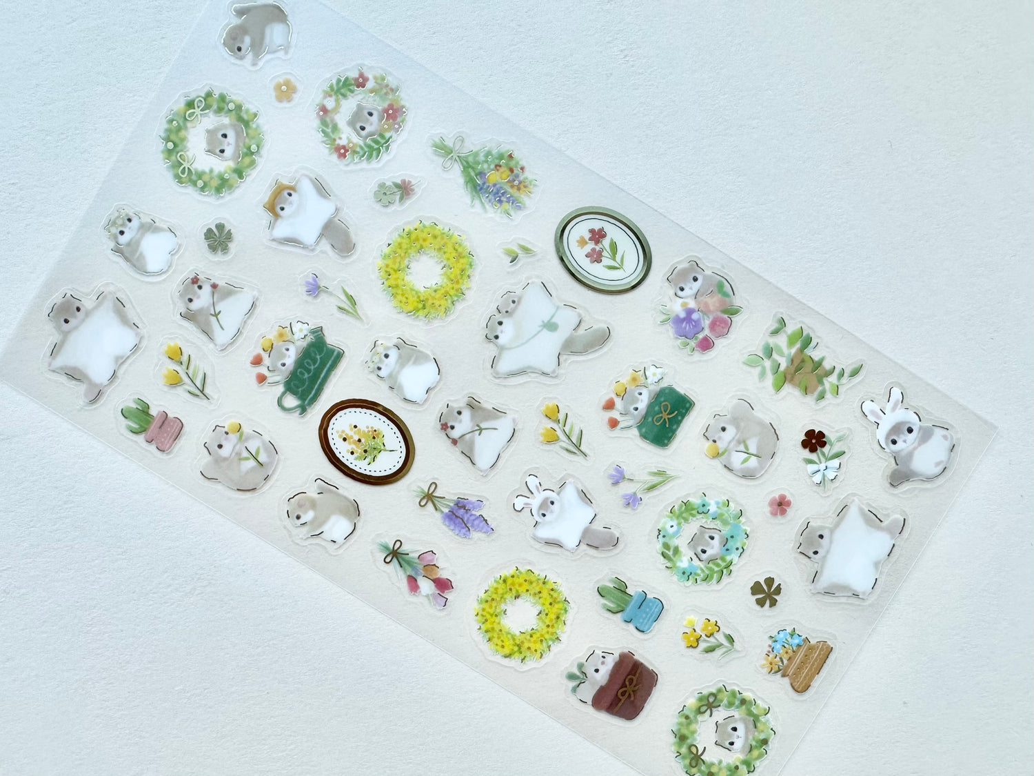 Klsitermerker med flygeekorn som er omgitt av blomsterbuketter og kranser.