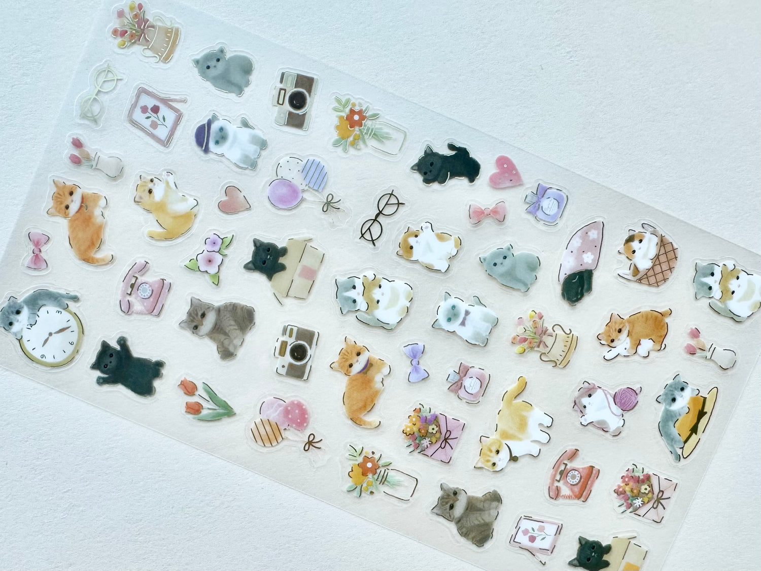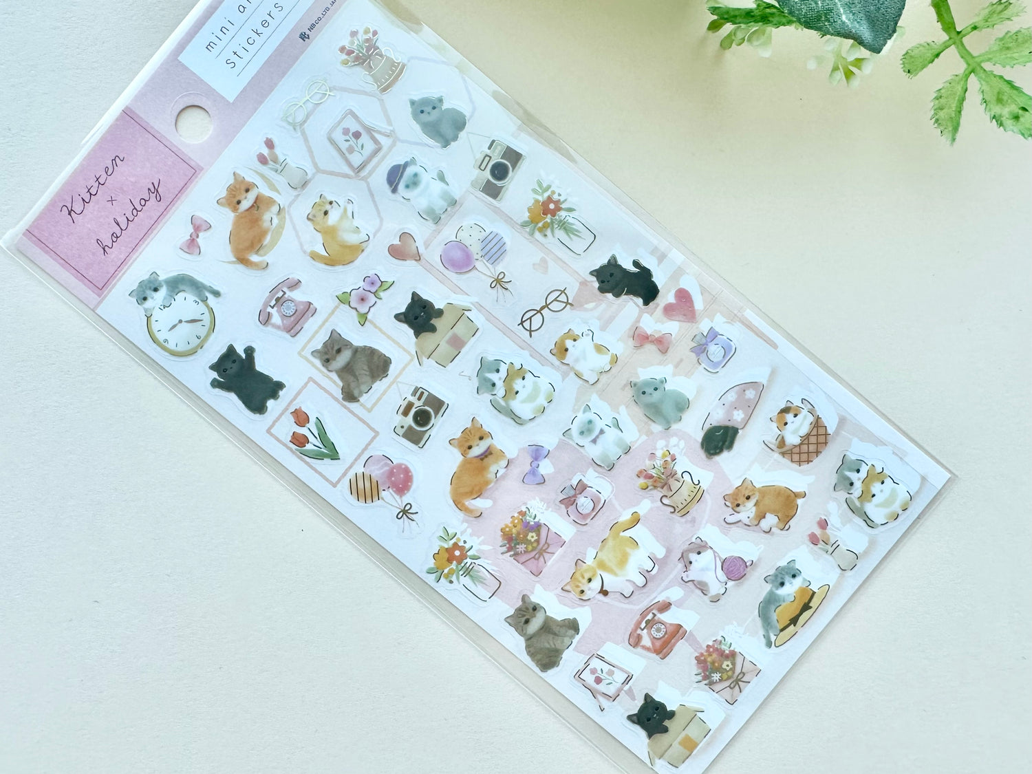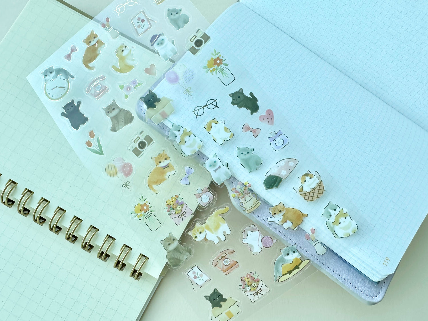 Klistermerker med kattunger som koser seg i et varmt og koselig rom.